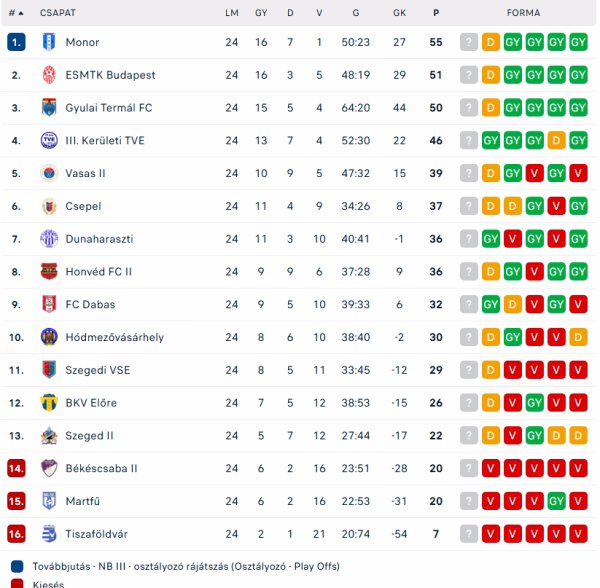 Nem tudott nyerni Gyulán a Liza, így maradt a négy pontos hátrány a listavezető Monorral szemben. A dél-pesti rangadó sem lesz egyszerű a piros-fehéreknek. Egy kicsit mintha megtörni látszódna a Honvéd lendülete, talán kicsit csalódást keltő volt a közlekedésiek elleni hazai döntetlen. Nem lesz könnyű dolguk az Ady Endre úton, nem mondom, hogy esélytelenek a pontszerzésre, de ha az ESMTK továbbra is tapadni akar a Monorra, akkor nyernie kell!