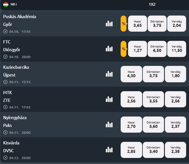 Az NB I következő fordulója nemcsak a pályán ígér izgalmakat, hanem azok számára is, akik szeretik előre olvasni a meccsek alakulását. Több olyan párosítás is akad, ahol a forma, a tabella és az oddsok együtt kifejezetten érdekes lehetőségeket kínálnak.